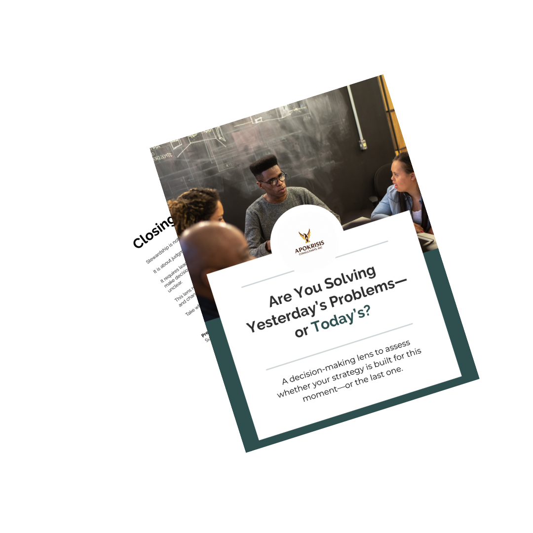 This decision-making lens offers a structured pause—helping leaders assess whether their current work reflects today’s conditions or yesterday’s realities.